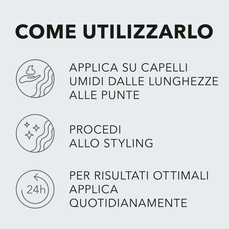 Applica il protettore termico in crema sui capelli bagnati, distribuendolo uniformemente dalle medie lunghezze alle punte. Modella i capelli come preferisci. La sua formula leggera lo rende ideale per un uso quotidiano