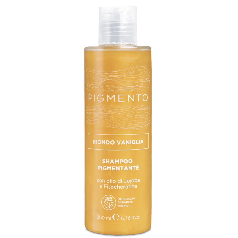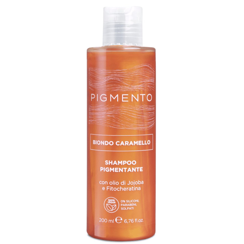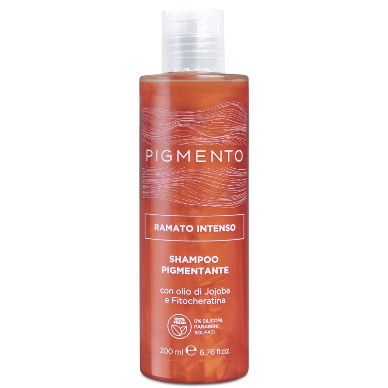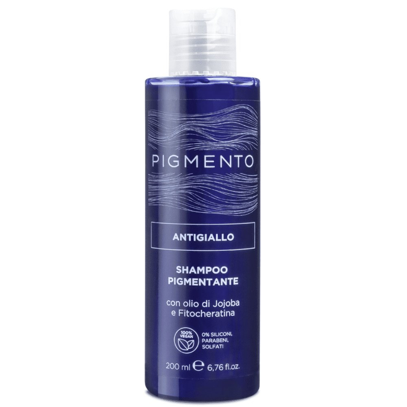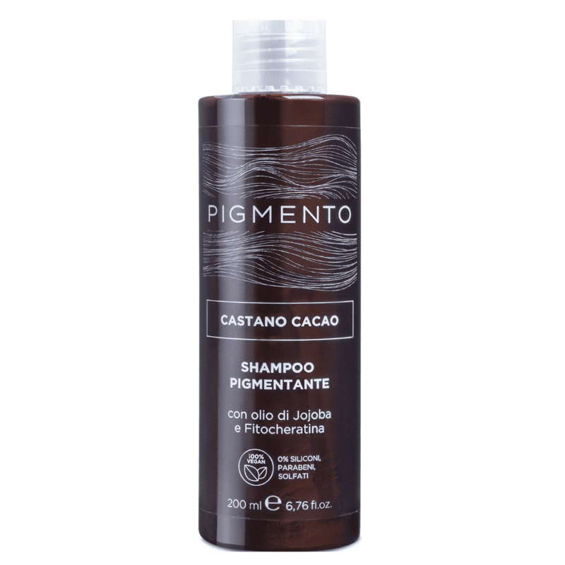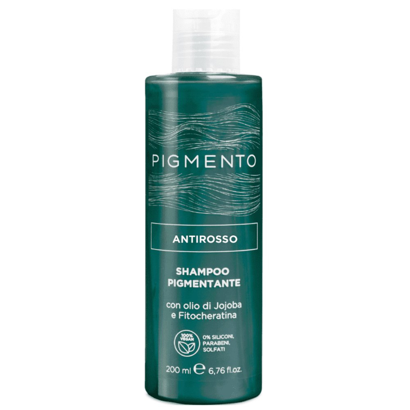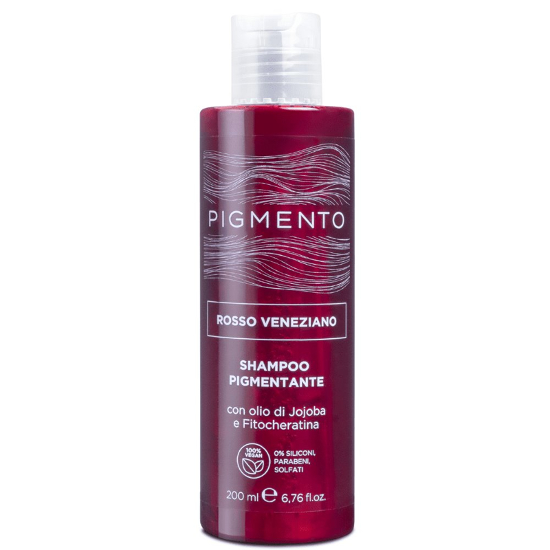 Lo shampoo Pigmento nasce con l’obiettivo di ravvivare l’intensità del riflesso del capello naturale o colorato donando allo stesso tempo nutrimento in profondità. Disponibili 10 colorazioni di cui 8 riflessanti (nero corvino, castano nocciola, rosso veneziano, ramato intenso, biondo vaniglia, viola porpora, castano cacao e biondo caramello) e 2 con funzione correttiva: la nuance antigiallo con funzione correttiva dell’effetto giallo sul capello biondo e la nuance antirosso per neutralizzare i riflessi rossi sui capelli castani, dondando un riflesso freddo ed omogeneo. Funzione: deterge e ravviva il colore dei capelli naturali o colorati apportando nutrimento e brillantezza. Formula a base di olio di Jojoba e Fitocheratina che idratano e nutrono in profondità il capello rendendolo brillante e setoso 100% Vegan: 0% siliconi, parabeni, solfati.