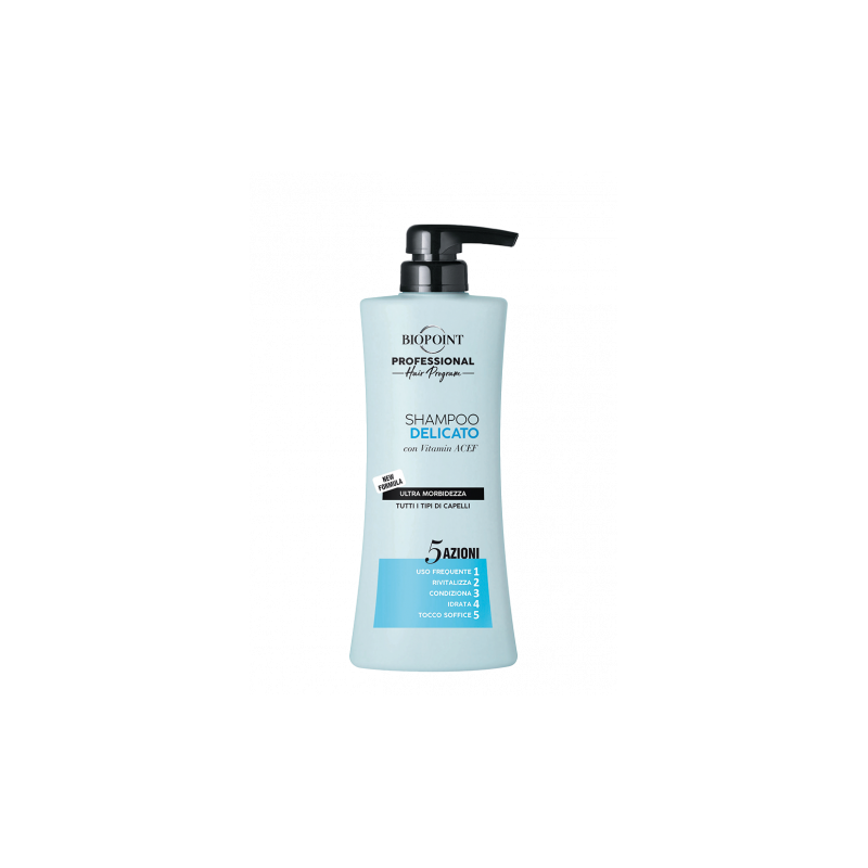 Lo Shampoo Delicato con 5 Azioni dona nuova vitalità e benessere a tutti i tipi di capelli, anche quelli più delicati, per un risultato professionale direttamente a casa tua. Con un blend di Vitamine (ACEF), Cheratina ed Estratto di Aloe: 1 È ideale per l’USO FREQUENTE grazie alla formula a detersione delicata. 2 RIVITALIZZA, donando nuova forza e consistenza al fusto. 3 CONDIZIONA i capelli, lasciandoli più districabili e facili da pettinare. 4 IDRATA e rigenera la fibra capillare in totale leggerezza. 5 TOCCO SOFFICE, per capelli che ritrovano la loro naturale morbidezza.