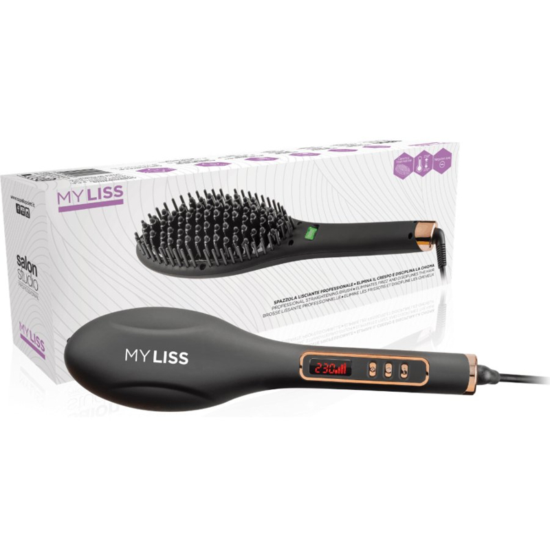 Spazzola lisciante professionale. Elimina il crespo e disciplina la chioma per un look perfetto a prova di umidità. Setole in ceramica e tormalina per garantire capelli morbidi e luminosi. Tecnologia con ioni negativi adatti ad eliminare l’effetto crespo e ottenere una chioma sana. Temperatura regolabile da 120° a 230° per scegliere il livello di calore più adatto ai propri capelli. Riscaldamento ultrarapido per uno styling rapido e impeccabile. Spegnimento automatico dopo 60 minuti per maggiore sicurezza. Display LCD. Cavo rotante di 3 metri per garantire la massima libertà di movimento e facilità d’uso. Garanzia di 2 anni.