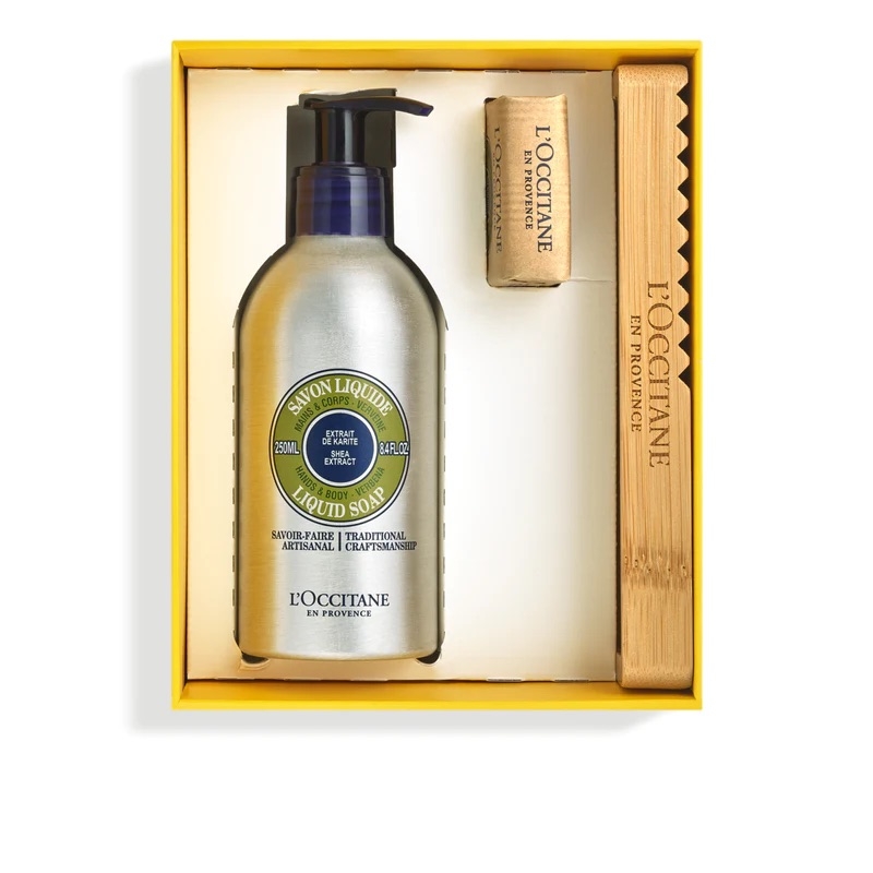 Un fantastico kit per la cura completa delle Mani: Sapone Liquido Verbena 250ml, Sapone Solido Verbena 50gr, Porta Sapone in legno.