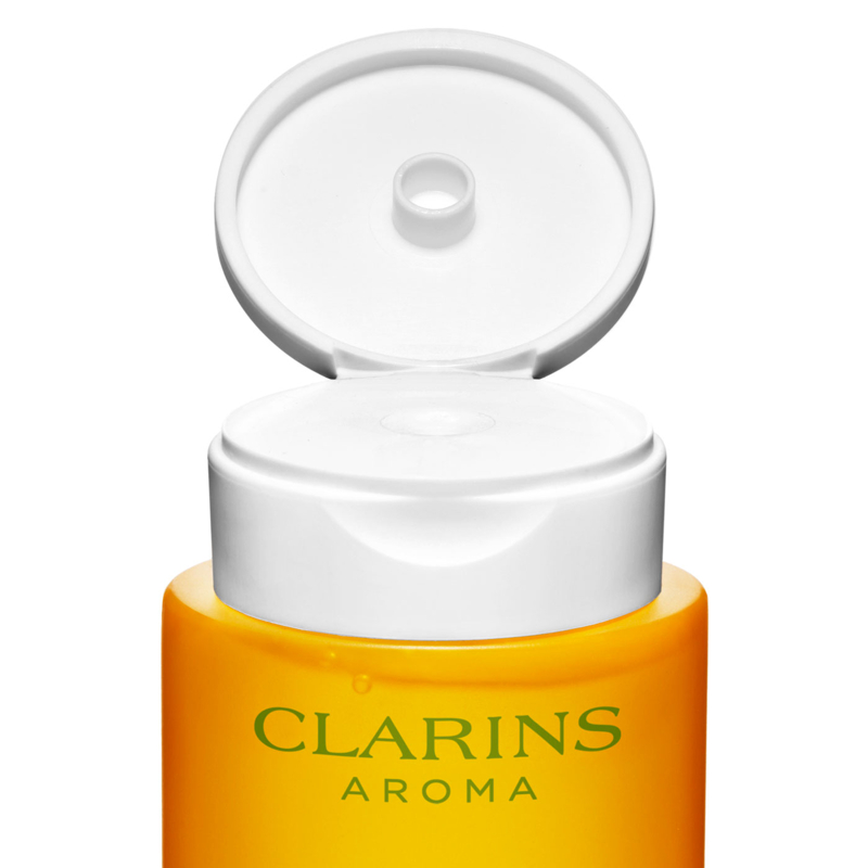 Tutta l’expertise Clarins Aroma è presente in questo trattamento detergente tonificante che associa gli oli essenziali di menta campestre, geranio odoroso bio e rosmarino con estratto di saponaria bio naturalmente schiumogeno. La texture in gel si trasforma in una mousse a contatto con l’acqua per detergere dolcemente il corpo nella vasca da bagno o sotto la doccia, tonificando la pelle e lo spirito. Grazie all’effetto del calore, rilascia i vapori aromatici tonificanti per un momento di benessere, come alla spa. Utilizzo riservato agli adulti. 98% di ingredienti di origine naturale. Il flacone può essere ricaricato con le eco-ricariche.