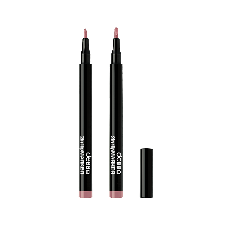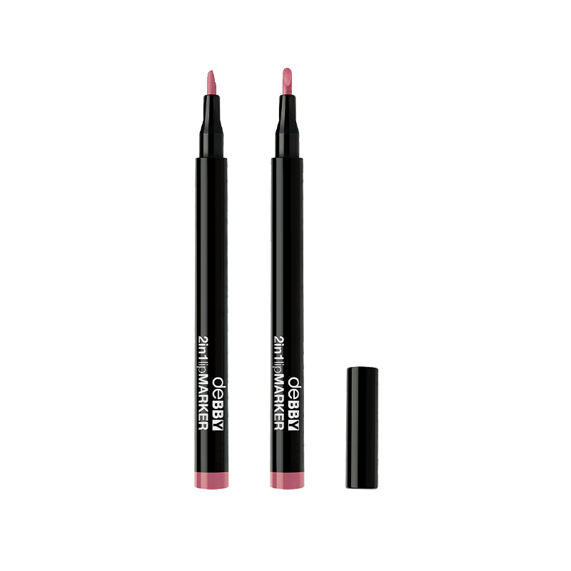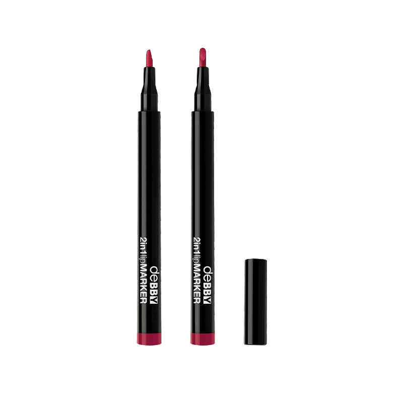 deBBY rilancia il suo lipMARKER 2in1 con una nuova formulazione semi-permanente, a prova di sbavatura. La texture, morbida e scorrevole, non secca le labbra, assicura un colore intenso e un finish naturale dalla tenuta estrema. La sua punta di precisione permette una doppia applicazione, ideale per un contorno labbra perfettamente delineato e un riempimento intensamente colorato.