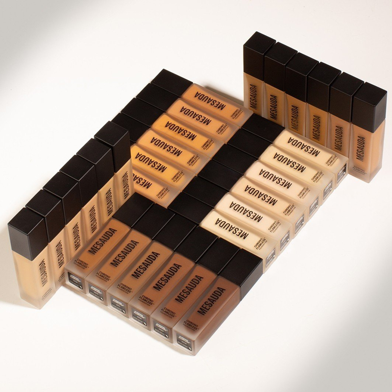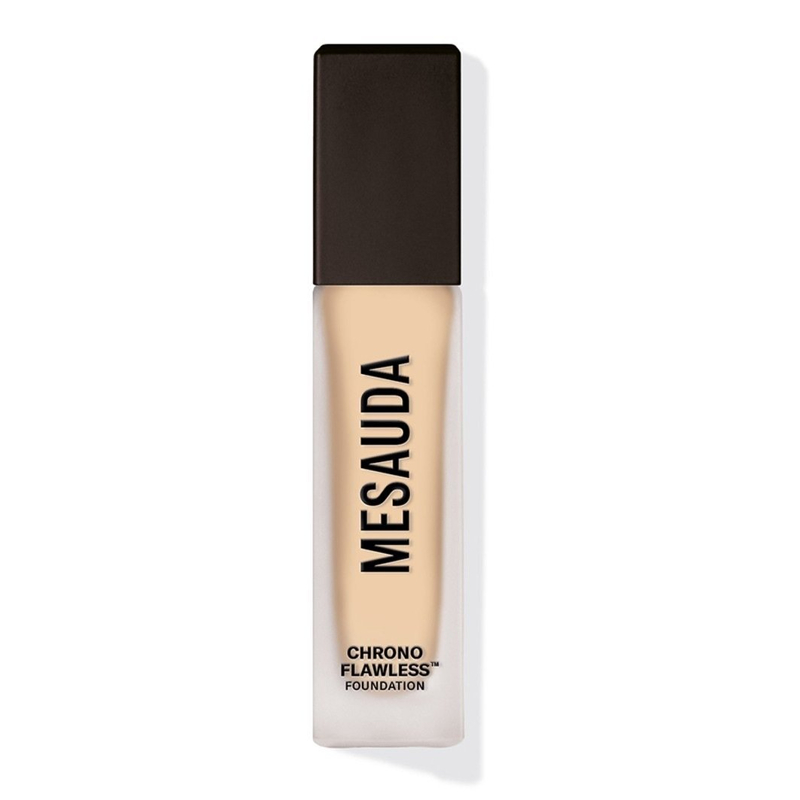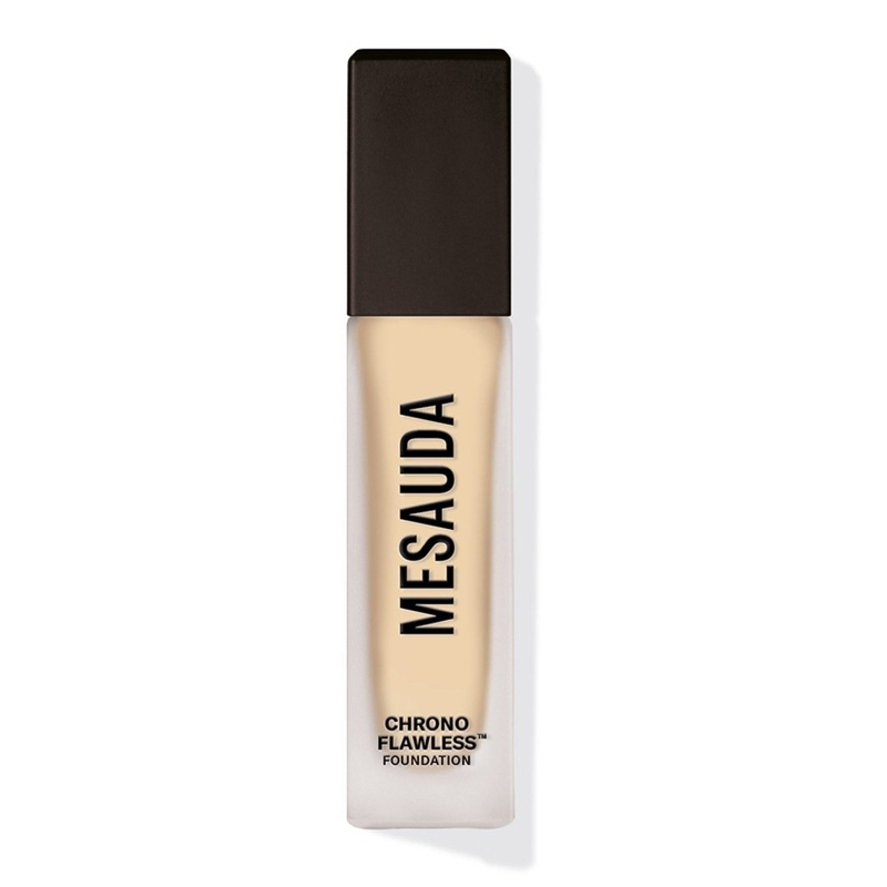 Il mondo del fondotinta per il viso di Mesauda si amplia e presenta con orgoglio CHRONO FLAWLESS TM, il leggero fondotinta in emulsione: una combinazione perfetta tra alta copertura e durata nel tempo, senza compromettere il comfort e garantendo un finish naturale con effetto seconda pelle. Il passare del tempo può alterare la bellezza della pelle. Ecco perché è stata sviluppata una formula che aiuta a sincronizzare l'orologio del benessere della pelle e allo stesso tempo protegge dallo stress ossidativo causato dalla luce blu. Inoltre la vitamina C in esso contenuta rafforza l'aspetto naturale del viso.