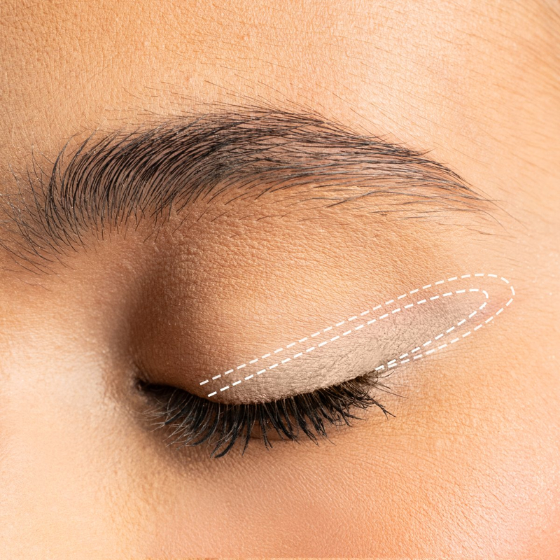 Applica Drawmatic ShadowTM direttamente sulla palpebra con la punta inclinata. Puoi sfumare il colore con la punta