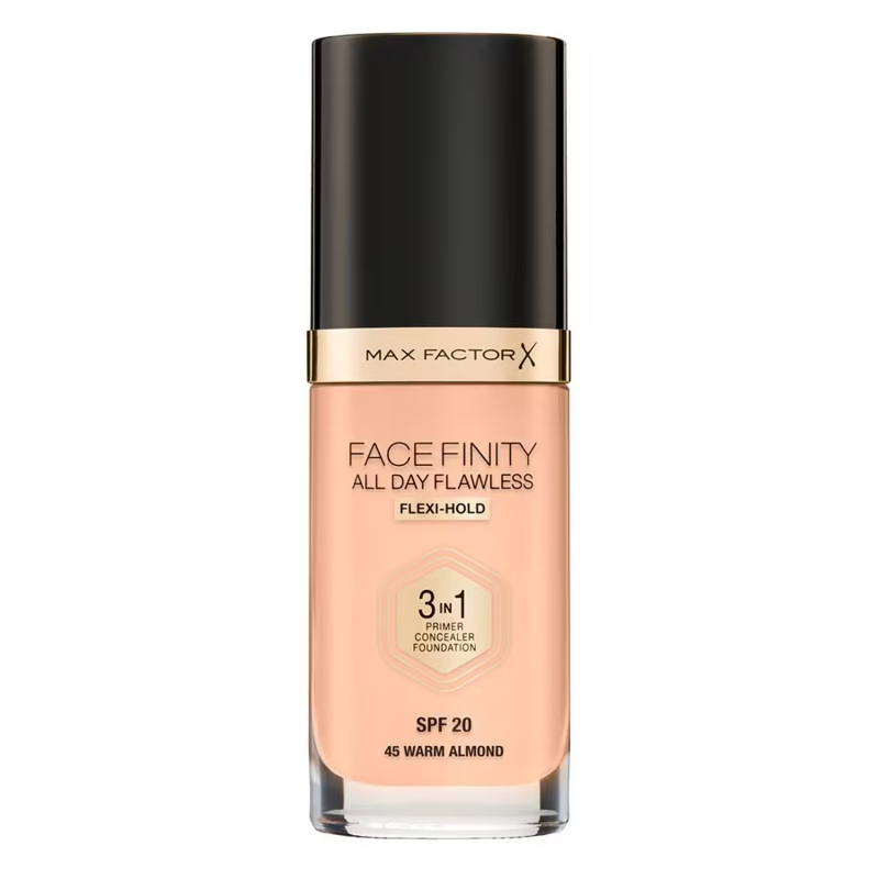 Facefinity di Max Factor è un fondotinta liquido con primer e correttore integrati nella sua formula a lunga tenuta. Per un finish uniforme che dura a lungo. La formula a base di silicone e acqua crea un make up ad alta coprenza e facilmente stratificabile. Il primer fornisce una morbida base al trucco, mentre il correttore nasconde le imperfezioni della pelle. Inoltre, facefinity non contiene olii, che potrebbero danneggiare il delicato equilibrio cutaneo e protegge l'incarnato dai raggi solari grazie alla protezione SPF 20.