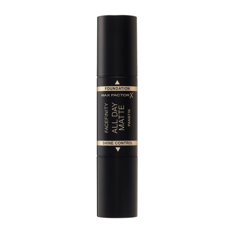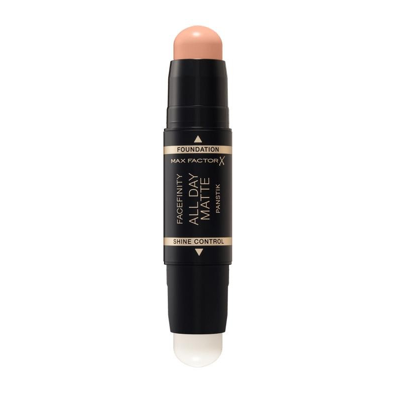 Facefinity All Day Matte Panstik di Max Factor offre un`alta coprenza opaca senza sforzo ed è perfetto per i ritocchi on the go. L`applicatore 2-in-1 ha 2 estremità che possono essere usate insieme o separatamente e includono un fondotinta e un primer opacizzante che minimizza i pori. Il fondotinta Panstik è a lunga tenuta ed alta coprenza. La formula ha una tecnologia a prova di tocco ed è progettata per rimanere fresca e opaca tutto il giorno senza la necessità di ritocchi. Copre efficacemente imperfezioni, occhiaie e persino discromie della pelle e iperpigmentazione, senza appesantire l`incarnato. La sua texture ultra cremosa si trasforma da solida a liquida per scorrere agevolmente sulla pelle donandole un aspetto liscio e vellutato, mentre la forma arrotondata consente un`applicazione precisa. Consigli per il trucco: per trovare la tua nuance ideale, prova il fondotinta sull`incarnato della linea della mascella. Max Factor Facefinity All Day Matte Panstik può essere utilizzato su tutto il viso o per nascondere le singole imperfezioni. Applicalo sempre con una buona luce naturale per garantire una copertura omogenea. Applicalo con le dita per scaldare il prodotto e assicurare una copertura uniforme. Il lato opacizzante può essere utilizzato prima del fondotinta come primer o dopo, come ritocco durante il giorno per tenere a bada l`effetto lucido.
