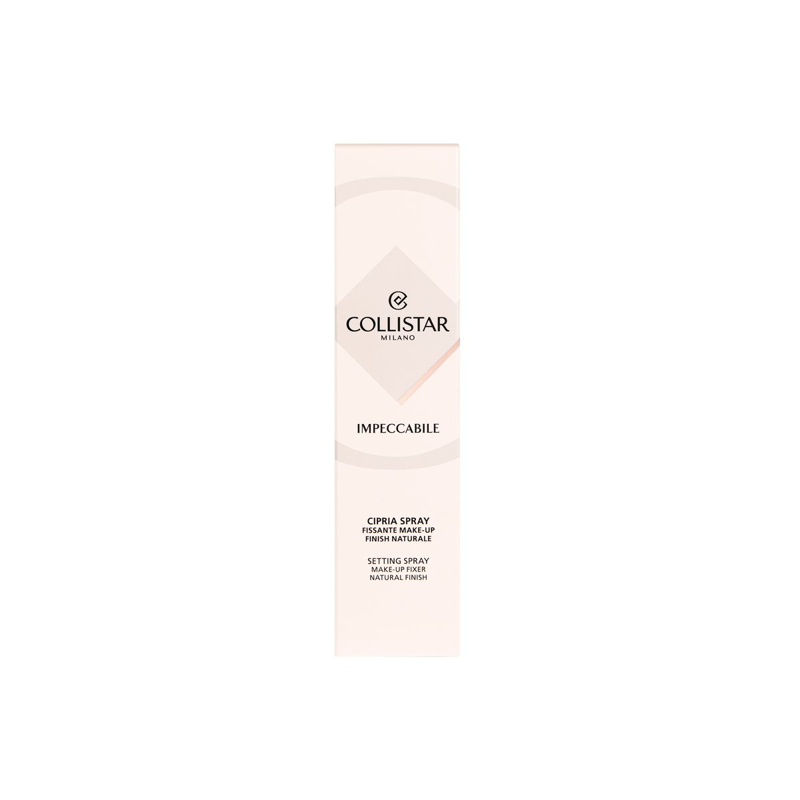 Con la nuova Impeccabile Cipria Spray l’efficacia fissante di una cipria incontra la leggerezza e il comfort di uno spray pratico e facile da usare. La sua forza? È nella performance: prolunga la durata del make-up senza alterarne l’aspetto nè il finish, regalando alla pelle freschezza e idratazione istantanee. Un velo invisibile che si fonde con l’incarnato, senza appesantire o seccare, e dall'effetto impercettibile per ore, per un trucco resistente anche nelle giornate più intense. Oltre alla sua efficacia comprovata, Impeccabile Cipria Spray è anche estremamente versatile, e offre una doppia modalità di utilizzo: se applicata alla fine del make-up, fissa e sigilla il risultato con un film sottile che ne prolunga la tenuta se usata prima del make-up, prepara invece la pelle, uniformandola e migliorando l’aderenza dei prodotti successivi. Il tutto con la semplicità di un gesto intuitivo! La formula, alcohol free e skincare-based, è arricchita con un Complesso Idratante Dermo-Restitutivo che rafforza la barriera cutanea e dona comfort, un agente filmogeno anti-pollution che protegge dagli agenti esterni e, infine, Acqua di Menta Italiana che rinfresca e rivitalizza l’incarnato. EFFICACIA DIMOSTRATA* 100% fissa e prolunga la durata del make-up 100% non altera il finish della base 100% pelle liscia e levigata +22% idratazione cutanea post applicazione° Prodotto resistente all'acqua *Test di autovalutazione su 20 donne. % di soggetti in accordo con l’affermazione subito dopo l'applicazione e dopo 21 gg °Test clinico-strumentale su 20 donne tra i 18 e i 70 anni TESTATO DERMATOLOGICAMENTE - TESTATO PER LA NON COMEDOGENICITÀ - ADATTO PER TUTTI I TIPI DI PELLE, ANCHE SENSIBILI