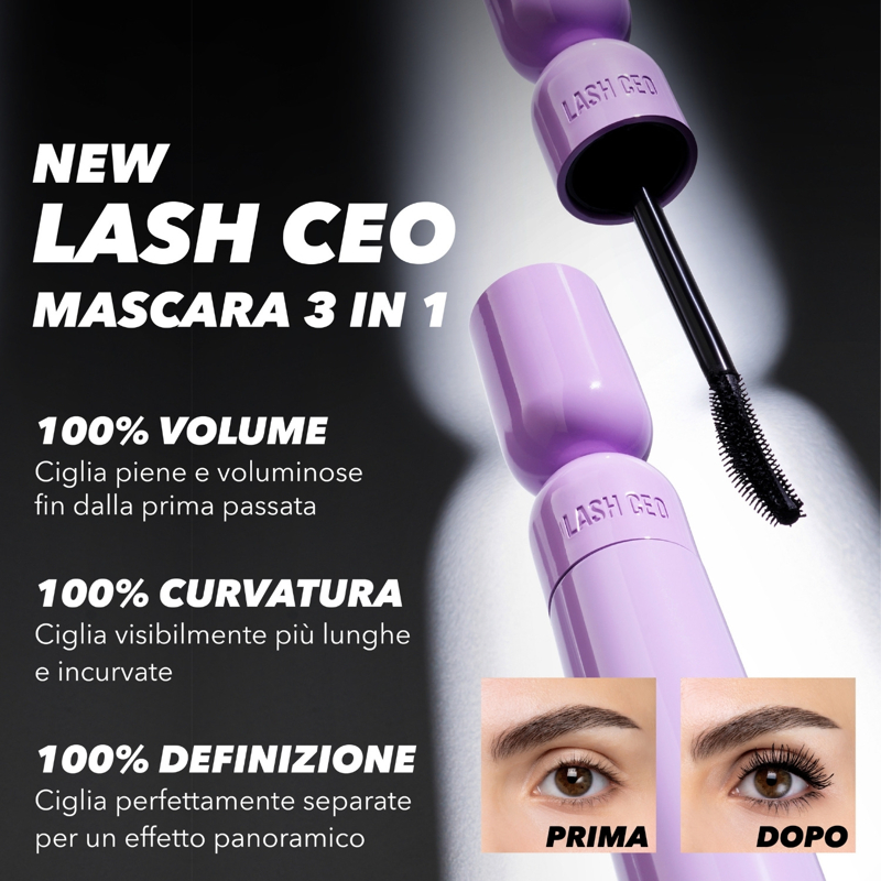LASH CEO è un mascara che volumizza, incurva e definisce.