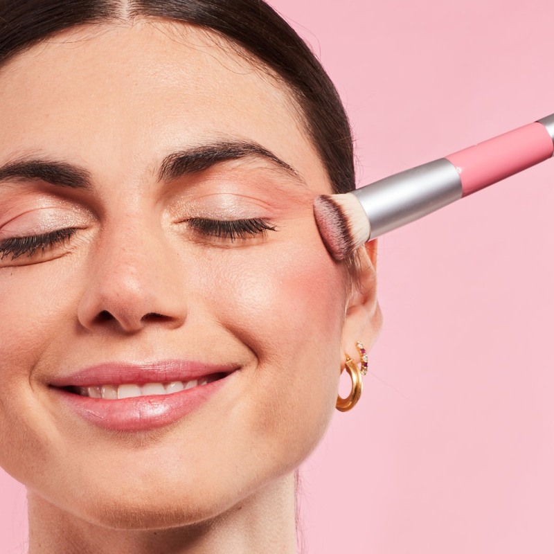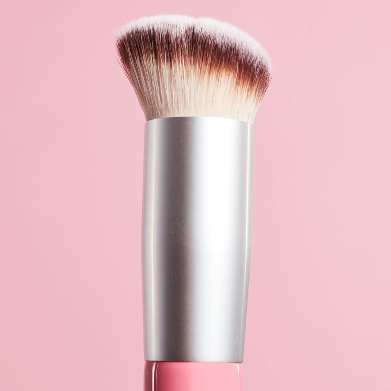 Il lato largo ha una forma angolata ergonomica che permette l’applicazione con semplicità del blush sotto o a cavallo dello zigomo, sfumando con movimenti circolari. Il lato corto con setole più compatte serve per applicare il blush in modo più definito (sulle “mele” degli zigomi) o l’illuminante facendo sempre movimenti circolari sulla parte interessata.
