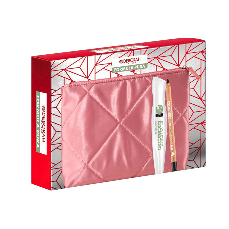 Questo cofanetto regalo contiene: Mascara Formula Pura Volume e Matita Occhi Formula Pura Bio.