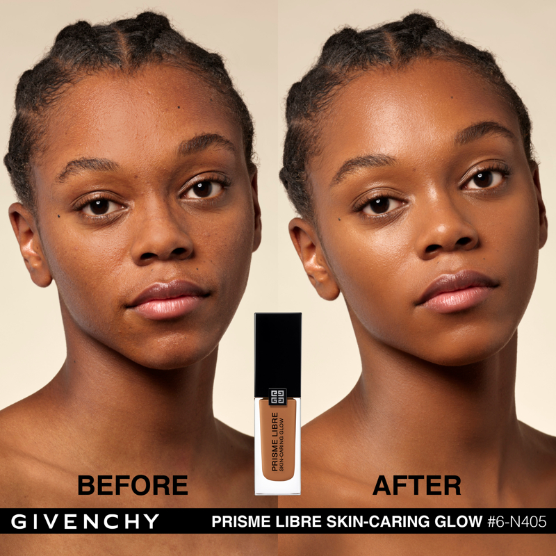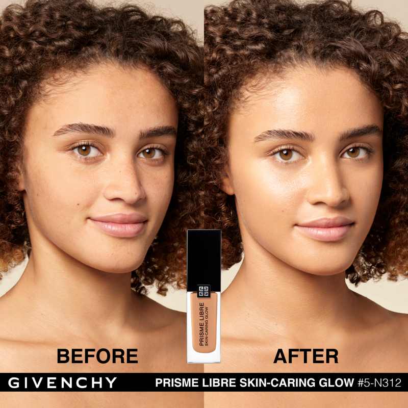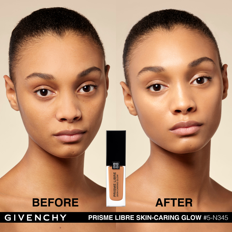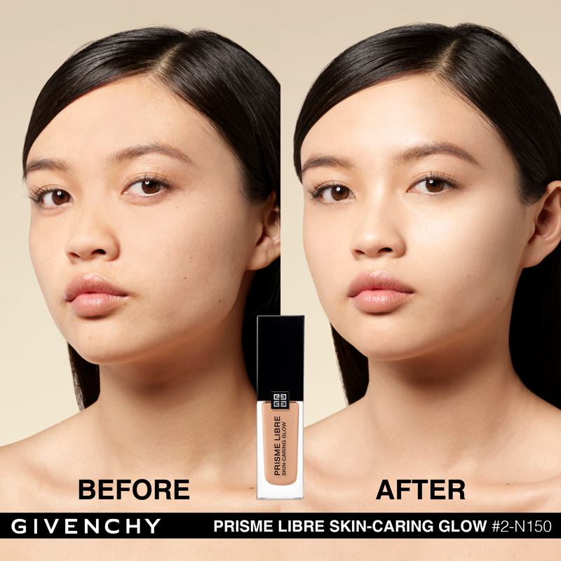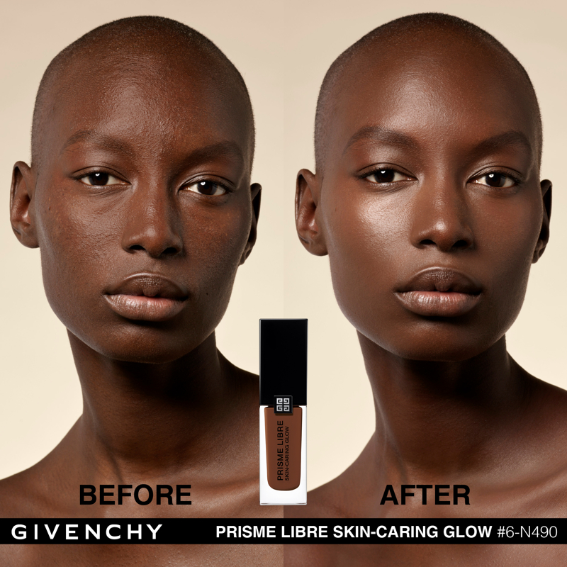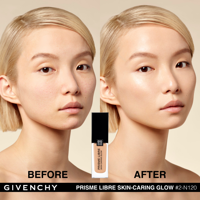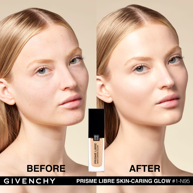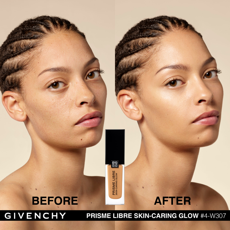 Domare la luce. È da questa ricerca assoluta che è nato Prisme Libre di Givenchy. “Prisme”, per la sua capacità di rifrangere la luce in tutte le dimensioni. “Libre”, per la leggerezza e la finezza naturale di una texture che lascia vivere e respirare la pelle. Con lo stesso spirito, Givenchy propone oggi Prisme Libre Skin-Caring Glow, un fondotinta ibrido che supera i limiti del make up, Givenchy Prisme Libre Skin-Caring Glow integra il dosaggio record del 90%* di una base trattante e ben il 97%** di ingredienti di origine naturale. Inoltre, avendo a cuore la tutela dell’ambiente, è biodegradabile all’89%***. Givenchy Prisme Libre Skin-Caring Glow, un fondotinta sublimatore che si prende cura della pelle in modo tale da renderla visibilmente più bella con il passare del tempo. 12 ORE DI LUMINOSITÀ(1) Givenchy Prisme Libre Skin-Caring Glow racchiude 4 pigmenti correttori di colori diversi, particelle madreperlate che riflettono la luce e oli che contribuiscono a diffondere il minimo raggio: appena applicato, offre un effetto glow che dura 12 ore(1). Arricchito con attivi trattanti, rivela di giorno in giorno la luminosità naturale del colorito, che risulta migliorata del 57%(1) dopo quattro settimane di applicazione. 12 ORE DI CORREZIONE (1) I pigmenti “4 colori” del fondotinta Givenchy Prisme Libre Skin-Caring Glow contribuiscono a correggere le discromie mentre degli agenti sfumanti aiutano ad attenuare le piccole imperfezioni, a satinare la texture della pelle e ad affinare i pori. I benefici del fondotinta sulla qualità della pelle sono ottimizzati man mano che viene applicato: nel giro di quattro settimane, la comparsa dei pori diminuisce del 19%(1) e le imperfezioni del colorito sono ridotte del 13%(1). Prisme Libre Skin-Caring Glow rende la pelle più bella in modo naturale, la lascia respirare e permette di migliorarne la qualità, giorno dopo giorno. La luminosità naturale del loro colorito è visibilmente sublimata. Questi benefici sono confermati dagli studi clinici(1): dopo quattro settimane di utilizzo, la qualità della pelle è migliorata, l’aspetto idratato e la sua luminosità naturale è elevata. 24 ORE DI IDRATAZIONE(1) Battezzato Advanced Glow ComplexTM, il cuore attivo della formula del fondotinta Givenchy Prisme Libre Skin-Caring Glow integra una base trattante arricchita con ingredienti illuminanti e idratanti come l’estratto di nasturzio e di glicerina. Ciò garantisce non solo 24 ore(1) di idratazione intensa sin dall’applicazione, ma anche un netto miglioramento dell’idratazione della pelle nel corso del tempo: +25%(1) in quattro settimane. L’aspetto polposo della pelle aumenta del 10%(1). IL LUSSO DI DOMANI Il flacone del fondotinta Givenchy Prisme Libre Skin-Caring Glow racconta lo spirito Couture della Maison. È stato ideato in maniera ecoresponsabile per limitare il suo impatto ambientale. Statutario, riprende i codici estetici della gamma Prisme Libre: una base quadrata, un grande tappo nero laccato, delle linee scultoree e l’indispensabile firma delle 4G. *Il restante 10%è costituito da pigmenti e microperle **Il restante 3% contribuisce a ottimizzare l’integrità della formula nel tempo e la sua sensorialità *** Dati misurati per 28 giorni secondo il test OCSE 301B (1) Test clinico-strumental sotto controllo dermatologico su 33 donne tra i 21 e i 54 anni
