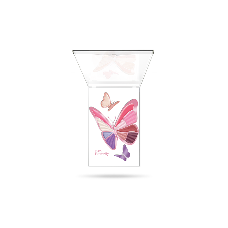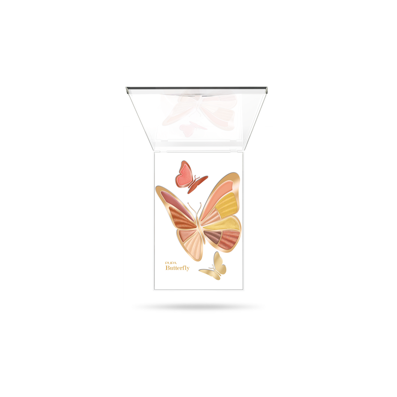 Gli ombretti compatti si fondono con gli ombretti e i rossetti in crema dai colori sgargianti, elevando la palette ad oggetto decorativo. Il coperchio trasparente permette di godere della bellezza della composizione anche quando non la si sta usando. Un cofanetto unico dedicata al make-up per occhi e labbra.
