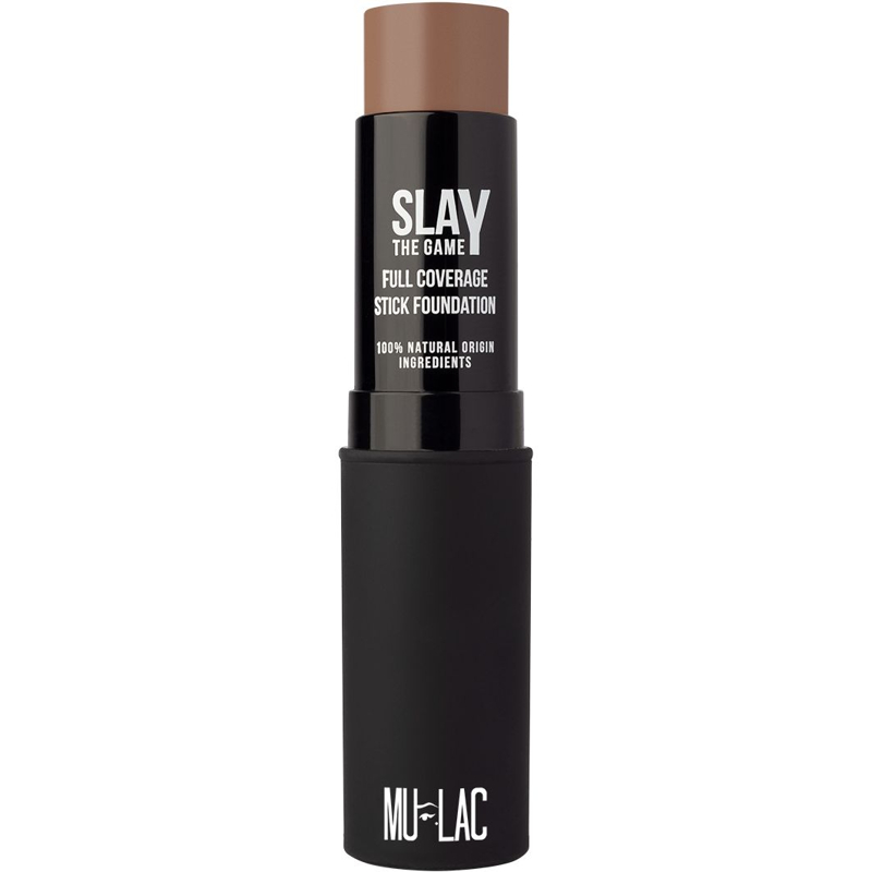 Color castagna perfetto per gli incarnati scuri dal sottotono giallo. “Slay the game” è il primo fondotinta in stick formulato interamente da ingredienti di origine naturale, ad alta coprenza, ideale per pelli da secche a grasse, che garantisce un risultato full coverage a lunga tenuta senza appesantire, grazie alla texture elastica del prodotto.