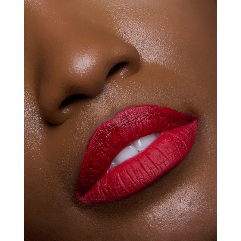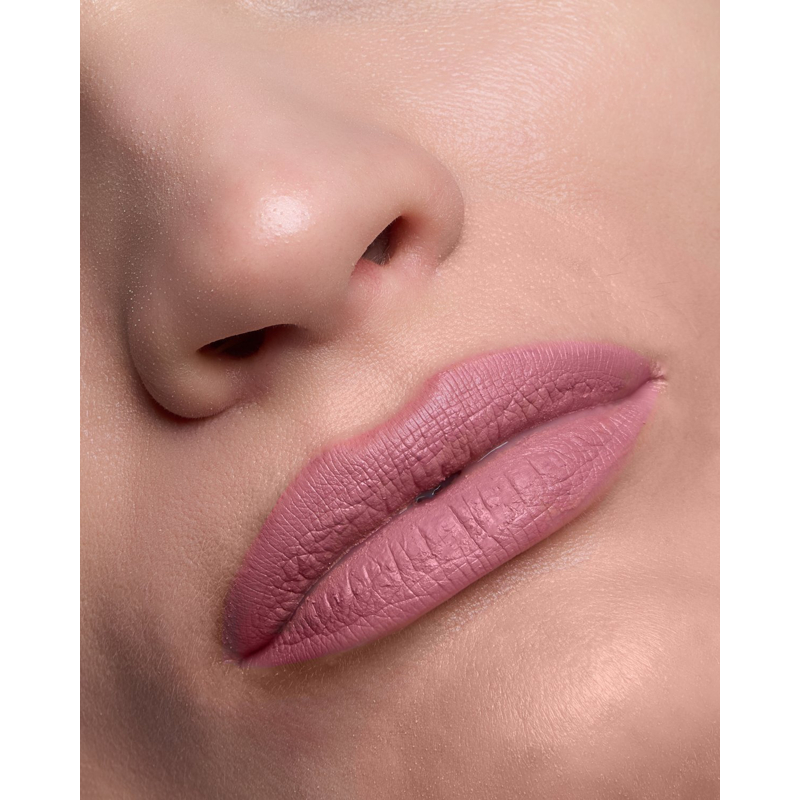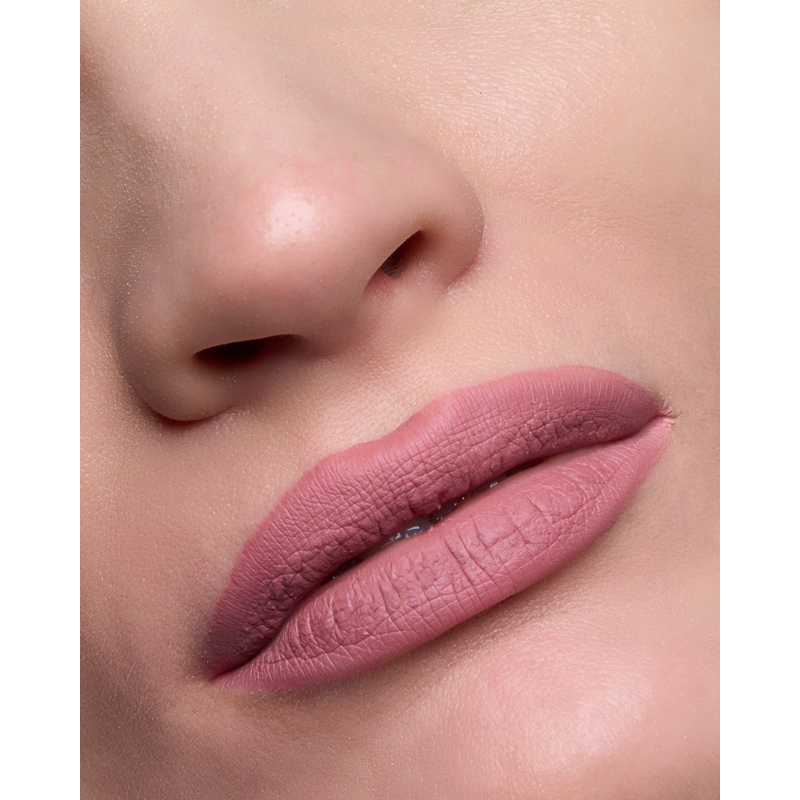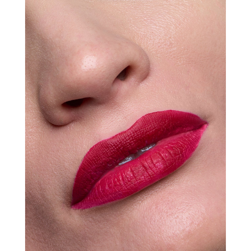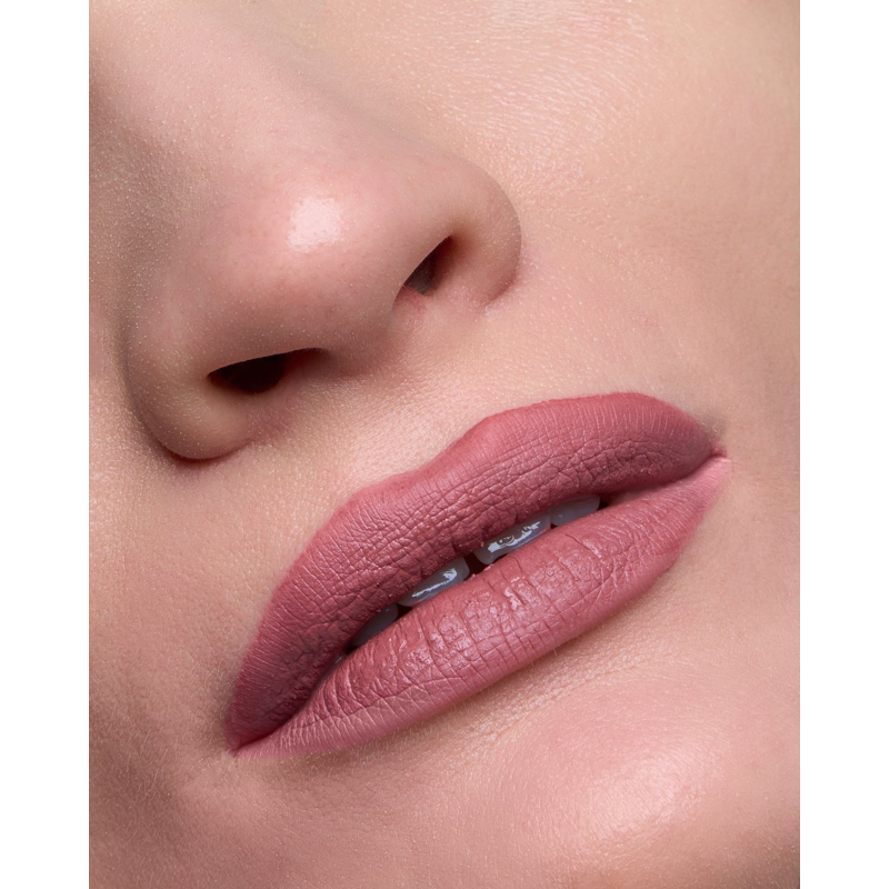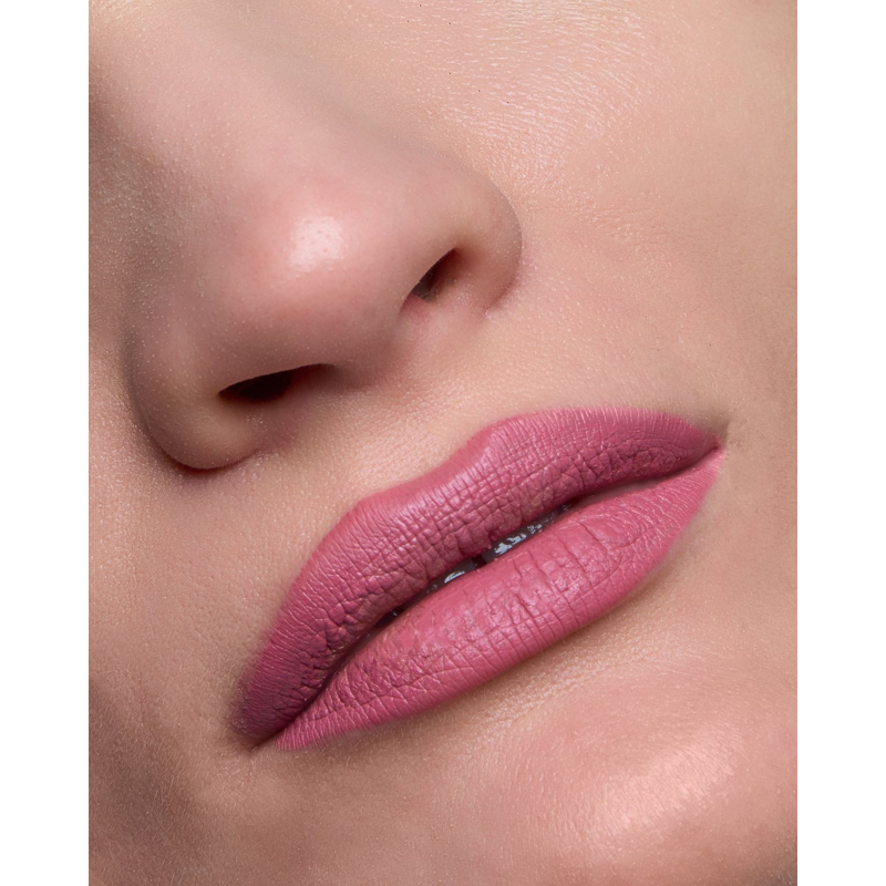 Rossetto liquido con copertura totale istantanea, texture confortevole grazie all’olio emolliente e durata prolungata.