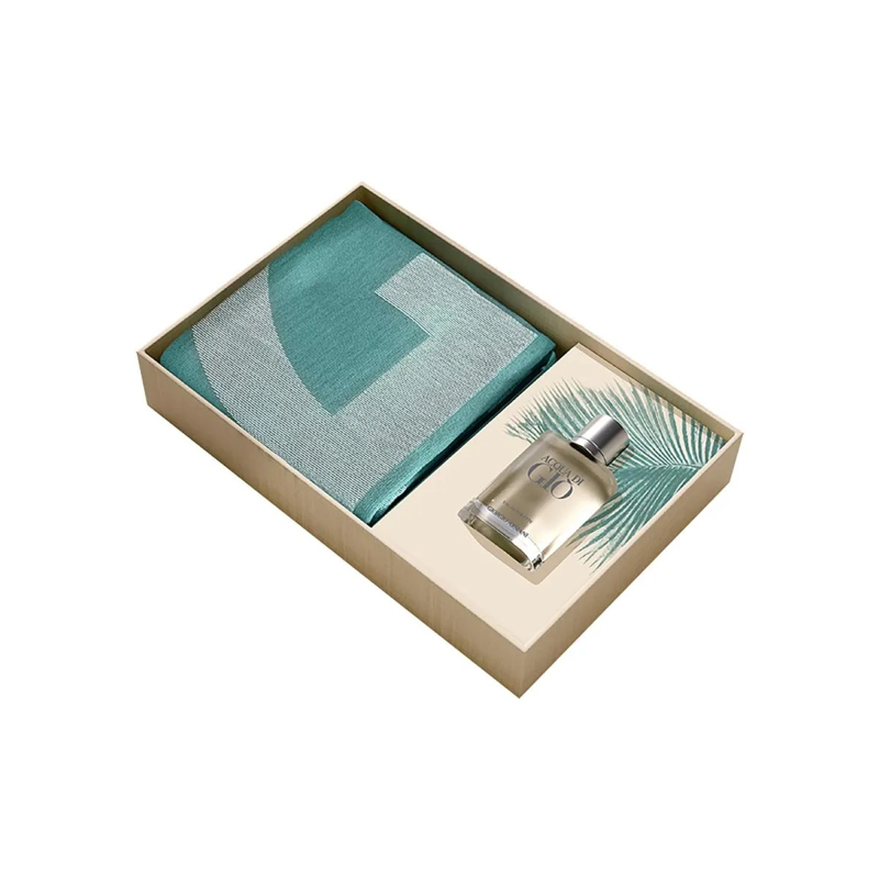 All'interno è incluso Acqua di Giò Eau De Toilette 100ml ed il Telo Mare.