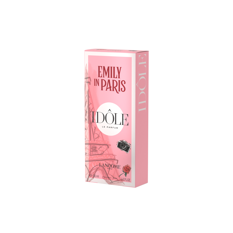 L'iconica fragranza Idôle che ami, decorata in una splendida versione esclusiva LANCÔME X EMILY IN PARIS EDIZIONE LIMITATA