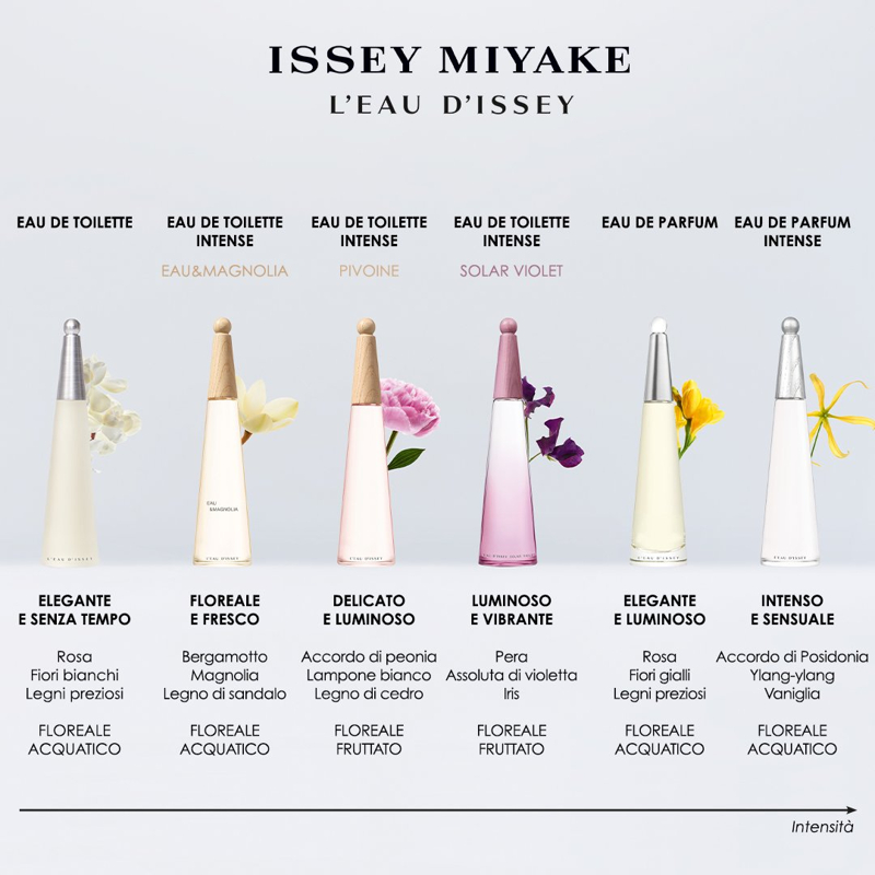 Issey Miyake L’Eau d’Issey eau de parfum intense: il nuovo profumo ricaricabile da donna. Parti per un viaggio nelle profondità dell’oceano con L’Eau d’Issey eau de parfum intense, la nuova fragranza femminile di Issey Miyake. L’Oceano massima espressione dell’intensità della natura. Una promessa di possibilità illimitate e sconfinati orizzonti, ancora da scoprire.Una nuova avventura, una nuova Eau d’Issey. Un’intensa fragranza acquatica floreale da donna.