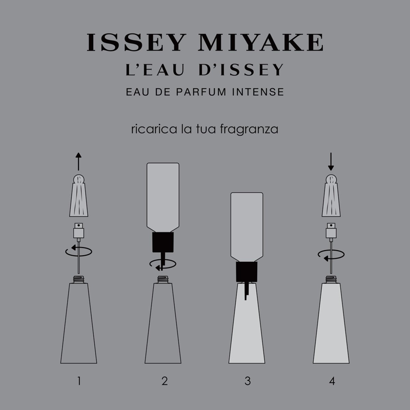 Issey Miyake L’Eau d’Issey eau de parfum intense: il nuovo profumo ricaricabile da donna. Parti per un viaggio nelle profondità dell’oceano con L’Eau d’Issey eau de parfum intense, la nuova fragranza femminile di Issey Miyake. L’Oceano massima espressione dell’intensità della natura. Una promessa di possibilità illimitate e sconfinati orizzonti, ancora da scoprire.Una nuova avventura, una nuova Eau d’Issey. Un’intensa fragranza acquatica floreale da donna. I design di Issey Miyake hanno sempre tratto ispirazione da incontri creativi. Portando avanti questo approccio, la profumiera Amandine Clerc-Marie ha incontrato Alexis Rosenfeld, fondatore del progetto di esplorazione oceanica 1Ocean. Un progetto con l’UNESCO, che ha la missione di sensibilizzare l’opinione pubblica sulla ricchezza della biodiversità dell’oceano e la sua salvaguardia. L’incontro di questi due mondi ha portato alla creazione di questa fragranza ispirata all’oceano. Le note acquatiche floreali iconiche de L'Eau d'Issey sono amplificate da un accordo di Posidonia. Creata appositamente per il profumo, è un’ode alle piante subacquee di Posidonia che fungono da polmoni del mare. Come accarezzate dalla luce del sole, queste delicate note verdi floreali sono illuminate da un ylang-ylang nel cuore della fragranza. Il calore della vaniglia si immerge in profondità sino alle note di fondo del profumo, avvolgendoti con il suo sillage sensuale. L’Eau d’Issey eau de parfum intense è una fragranza vegana e realizzata al 91% con ingredienti di origine naturale. Un flacone di profumo ispirato all’oceano. Per questa nuova fragranza intensa, l’iconico flacone de L’Eau d’Issey è stato rivisitato con un design che richiama i riflessi argentati dell’oceano. Per la prima volta, il flacone è ricaricabile, con un’innovativa ricarica in formato 150 ml. È sufficiente svitare il tappo della fragranza e applicare la ricarica sul flacone. Il processo di ricarica si interrompe automaticamente una volta riempito il flacone. Dalle tonalità argentate, ciascun tappo in 100% legno è ricavato da un singolo pezzo di legno, rendendo superfluo l’uso della plastica. La tua routine del profumo: vaporizza L’Eau d’Issey Eau de parfum intense nei punti strategici, come collo, polsi e piega dei gomiti, in modo che il profumo si diffonda con il calore del tuo corpo.