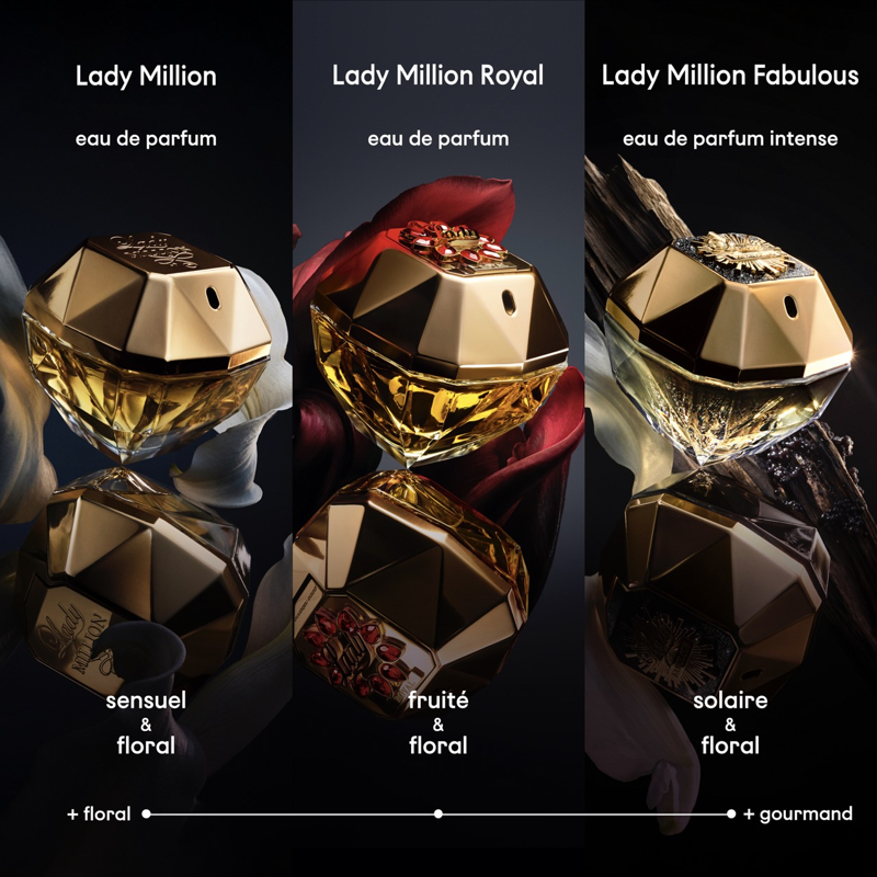 Entra nel regno di Lady Million Royal e scopri la nuova eau de parfum femminile, creata per mostrare il meglio di te.