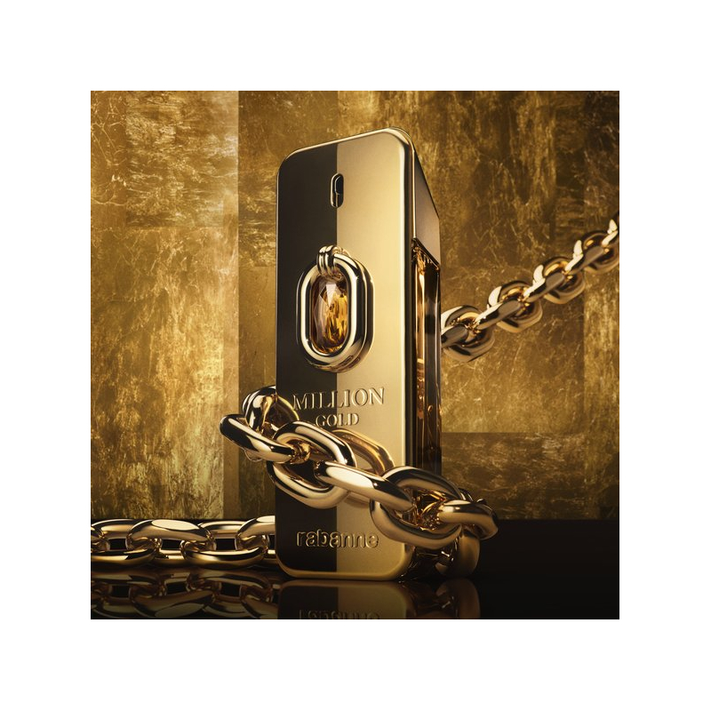 Eleva il tuo stile con Million Gold Elixir by Rabanne. Lasciati inebriare dall'oro. Million Gold Elixir Parfum Intense svela una nuova interpretazione della mascolinità Million, che sprigiona un successo inarrestabile. È il simbolo dell'opulenza. La sua aura brilla intensamente, trasformando tutto ciò che tocca in oro. Million Gold Elixir, ispirato alla profumeria di nicchia, si distingue per un ingrediente d'eccezione: una vaniglia liquorosa pura unita a un mandarino vivace e al calore profondo del legno di sandalo.