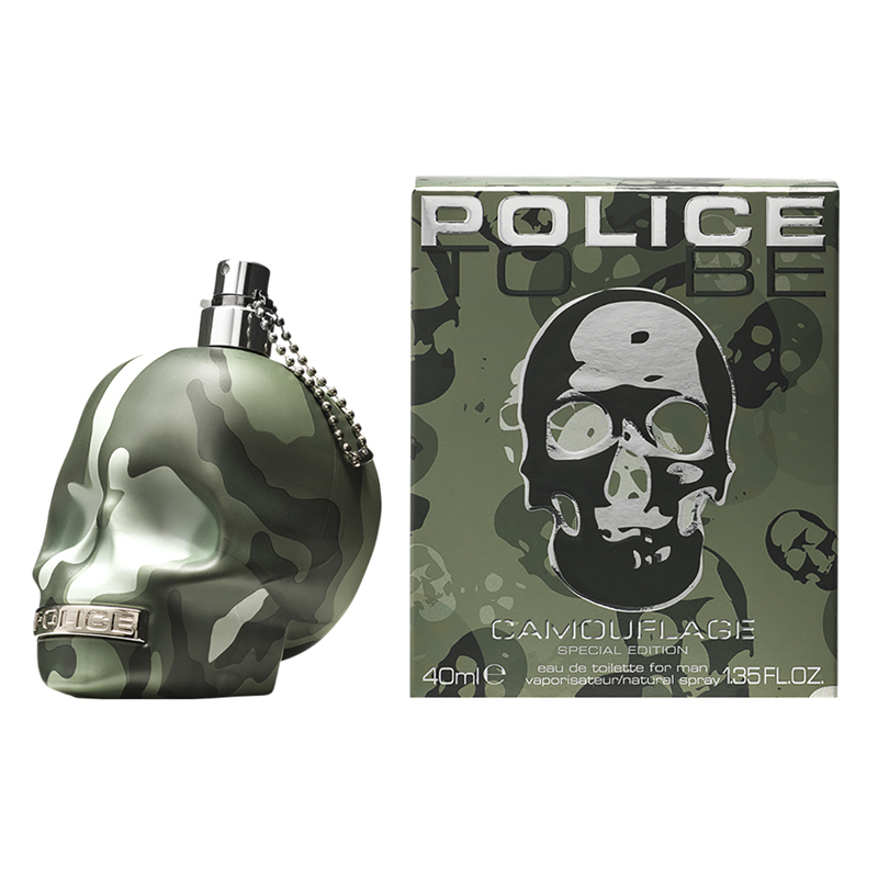 Il profumo To Be si veste Camouflage, una fantasia mimetica di origine militare diventata un must have. L'iconico teschio è stato reso ancor più affascinante ed attuale dal decoro, realizzato con varie cromie di verde con finitura opaca. Il flacone grazie al mix vincente della forma irriverente e del contrasto tra la grafica e le finiture metalliche, si rivela di forte impatto ed accattivante, per l'uomo sfrontato e deciso.