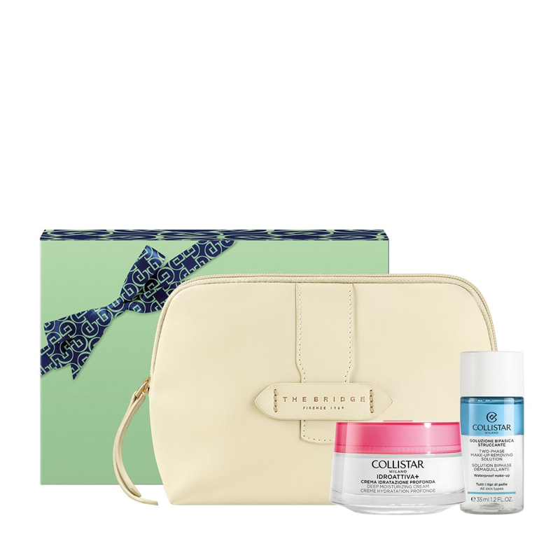 COLLISTAR E THE BRIDGE, PASSIONE ITALIANA The Bridge, eccellenza della pelletteria italiana, firma le esclusive Beauty-Bag dei cofanetti regalo Collistar. Le trousse dal design elegante ed essenziale sono abbinate ai prodotti Collistar più amati: scegli la tua combinazione tra le proposte delle linee Trucco, Viso, Corpo e Uomo. IDROATTIVA+ CREMA IDRATAZIONE PROFONDA Da più di 40 anni la nostra crema idratante best-seller, dalla texture iconica e avvolgente. Dona una sensazione di massimo comfort su viso e collo e preserva l’equilibrio della barriera cutanea, contribuendo a prevenire l’invecchiamento cutaneo. Ideale per le pelli da normali a secche. Con il 96% di ingredienti di origine naturale, contrasta la perdita di idratazione e preserva l’acqua naturalmente presente nel substrato cutaneo, grazie al suo cuore tecnologico e botanico composto da: • IDROATTIVA+ COMPLEX: racchiude idratazione e protezione. Il suo speciale attivo idratante, a base di zuccheri con inulina, idrata intensamente fino a 100H, garantendo anche massima protezione interna ed esterna grazie ad un attivo biomimetico che simula la trama della barriera cutanea. • IPERFERMENTATO DI PEONIA ITALIANA oggi, due volte più efficace nel combattere lo stress ossidativo cutaneo, causato dagli agenti ambientali, come smog ed inquinamento, che aggrediscono la nostra pelle quotidianamente. Un estratto biotecnologico 100% sostenibile, ottenuto attraverso un processo che rispetta la pianta che, una volta terminata l’estrazione, viene reintrodotta nel suo habitat naturale. Risultati: la pelle risulta morbida, protetta dagli agenti esterni e idratata a lungo. La linea IDROATTIVA+, con le sue formule efficaci e clean, pensate per ogni tipologia di pelle, racchiude il meglio della ricerca e dell’expertise Collistar: • FORMULE 100% VEGAN: senza ingredienti di origine animale, cruelty free • +95% DI ORIGINE NATURALE*: elevata naturalità per formule altamente tollerabili • 0% SILICONI: per un effetto non occlusivo su epidermide e barriera cutanea • Confezioni di eco-design: per rispettare i principi Collistar di sostenibilità e riciclabilità. *Percentuale di ingredienti di derivazione naturale, media della linea (esclusa BB Cream). Secondo standard ISO 16128 SOLUZIONE BIFASICA STRUCCANTE OCCHI-LABBRA Dissolve all'istante ogni tipo di trucco anche waterproof senza lasciare residui oleosi. Formulata per garantire la massima tollerabilità anche per pelle e occhi sensibili è arricchita con Viola Tricolore Italiana equilibrante e rigenerante e con Inulina, prebiotico naturale che rispetta il microbioma della pelle. PACKAGING DI ECO-DESIGN 100% PACKAGING RICICLABILE 100% FLACONE RICICLATO FORMULATO E PRODOTTO IN ITALIA COLLISTAR CLEAN RESEARCH® SENZA siliconi - ingredienti di origine animale - profumo - alcool - tensioattivi aggressivi - PEG TESTATO DERMATOLOGICAMENTE PER PELLE SENSIBILE E OFTALMOLOGICAMENTE PER OCCHI SENSIBILI E PORTATORI DI LENTI A CONTATTO | NICKEL CONTROLLATO* *nickel <0,0001%