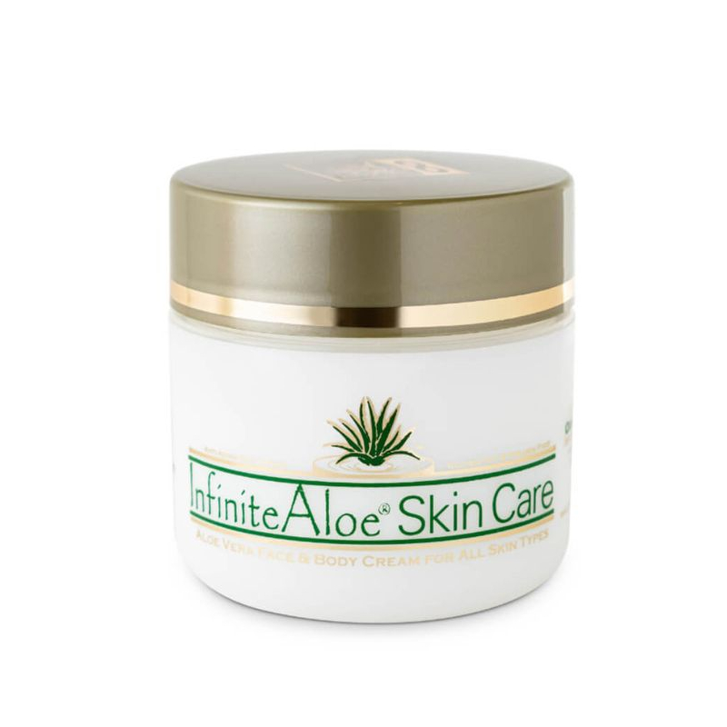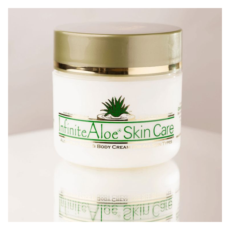 Il primo e principale ingrediente è un tipo speciale di aloe vera: Aloe Barbadensis Miller. È talmente efficace da essere utilizzato da medici in centri di ustioni in oltre 15 nazioni nel mondo. Lo coltiviamo biologicamente ai tropici, nelle migliori condizioni possibili. Questo costituisce uno dei principali segreti che differenzia Infinite Aloe dal resto dei prodotti del mercato. Il principale ingrediente in altri prodotti skincare è generalmente l'acqua, l'olio o addirittura qualcosa di chimico ma mai qualcosa di così alta qualità come quello che utilizziamo in Infinite Aloe. L'aloe vera è un miracolo naturale ed è stato usato per migliaia di anni per le sue proprietà nutritive e curative. Ma Infinite Aloe è molto di più del solo aloe vera. I prodotti sono fatti da aloe più 30 vitamine ed estratti botanici. Aggiungiamo nell'aloe vera l'acido ialuronico, il collagene, la vitamina A, la vitamina C, la vitamina E, DMAE, peptidi e molto altro. Non contiene petrolio, cera e plastica.