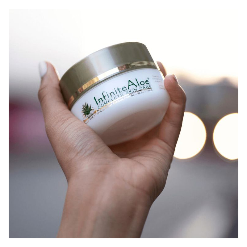 Lava la pelle con acqua tiepida (non calda), avendo cura di usare un detergente delicato. Entro 3 minuti dal lavaggio, dal bagno o dalla doccia, applicare generosamente InfiniteAloe Complete Skin Care su viso e corpo. Massaggiare leggermente più InfiniteAloe Complete Skin Care nelle aree interessate, senza tirare la pelle. Le aree di pelle molto secca squamosa, pruriginosa o irritata (con eruzioni cutanee, eczema, ecc.) possono richiedere più applicazioni ogni giorno fino a quando la pelle non è idratata e nutrita. I truccatori usano IA Complete Skin Care come primer sotto il trucco. Mescola una piccola quantità di IA Complete Skin Care con il tuo fondotinta preferito per trasformarlo in una bb cream. Copre leggermente le imperfezioni mentre ripara e riequilibra la pelle. Tieni IA Complete Skin Care nel tuo kit di pronto soccorso, valigia e auto: lenisce ustioni, punture di insetti, eruzioni cutanee, pelle irritata e screpolata e gli effetti del vento e del tempo.