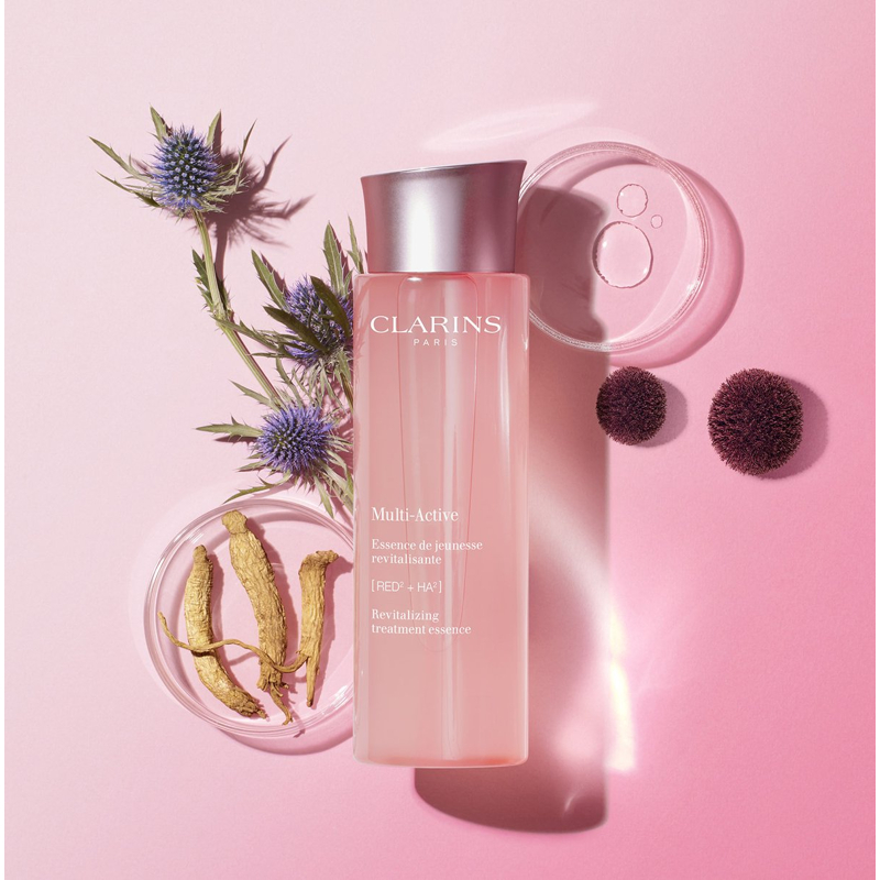 Per completare la routine Multi-Active, una lozione di giovinezza: la texture delicata, fresca e sensoriale è apprezzata per l’azione sulla luminosità e l’aspetto levigato della pelle. È arricchita con estratti di piante: estratto di cardo dei lanaioli (pianta bio) ed estratto di ginseng rosso bio, entrambi dall’azione energizzante estratto di regina dei prati con effetto purificante ed estratto di jania rossa dall’azione esfoliante. Il complesso di acido ialuronico completa la formula con il 97% di ingredienti di origine naturale e contribuisce a idratare la pelle.